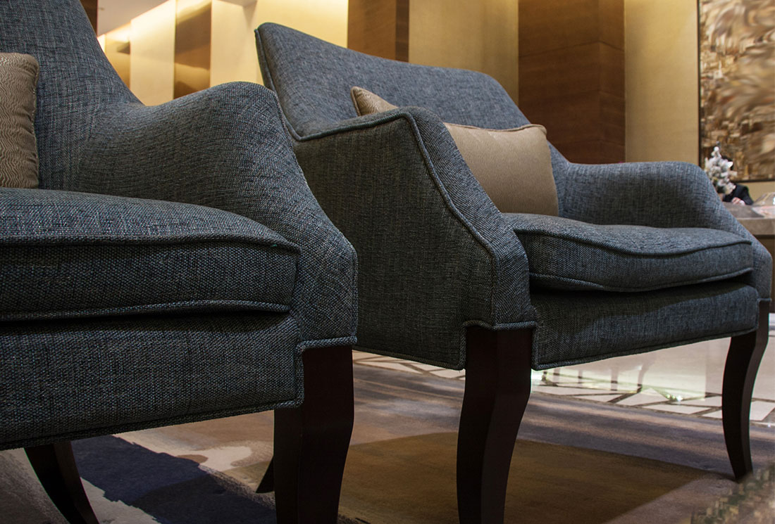 A calm, modern suite with premium finishes and soft lighting. with really nice cushions